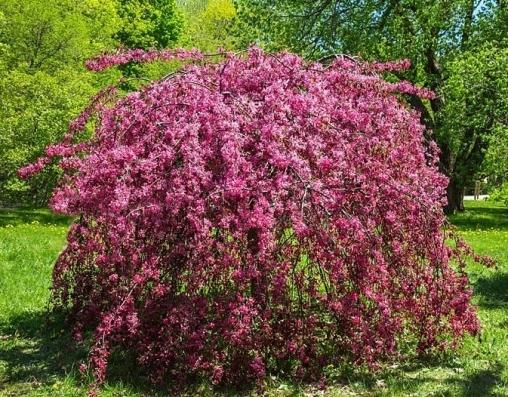 Яблоня плакучая Роял Бьюти (Royal Beauty) – это изысканное декоративное дерево, которое станет настоящим украшением вашего сада. Благодаря своей уникальной плакучей форме и ярким цветам, это растение привлекает внимание и создает атмосферу уюта и гармонии.